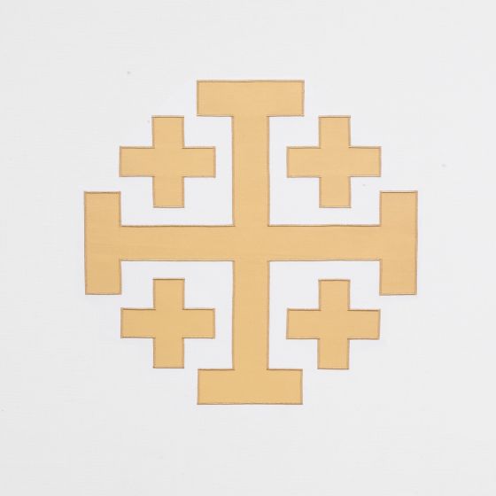 • Stunning triumphant, five-cross design, with thick gold crosses embroidered on a nurse available in any fabric and liturgical color