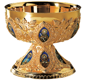 Rich filigree overlay on cup and base, with fine hand-painted fire enamel medallions, depicting the Twelve Apostles.