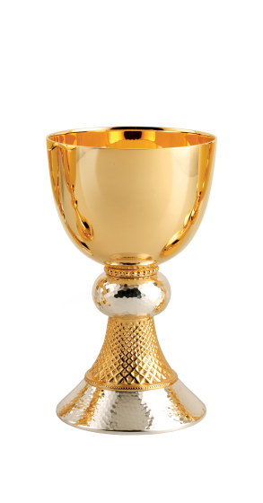 Fully handmade made construction throughout. Featuring a chiseled base and hammered node. Two tone finish (Gold and Silver)