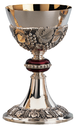 Classic Grapes and Leaves motif on collar and base. Red enameled node.
