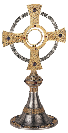 Stunning celtic style monstrance. Shown in beautiful two tone brass, also available in brass gold plated.
