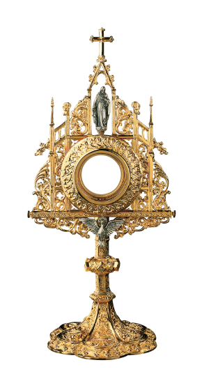 Gothic design featuring figures of the Sacred Heart and the Holy Spirit.