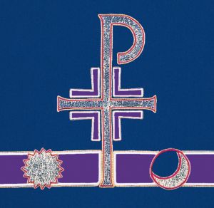 To press out any creases caused by packaging or shipping, use a steam iron set at mid-range heat and a slightly damp press cloth. Press from the back side of the parament, allowing as much steam as possible to penetrate fabric. Allow fabric to cool before removing from ironing board.