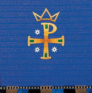 To press out any creases caused by packaging or shipping, use a steam iron set at mid-range heat and a slightly damp press cloth. Press from the back side of the parament, allowing as much steam as possible to penetrate fabric. Allow fabric to cool before removing from ironing board.