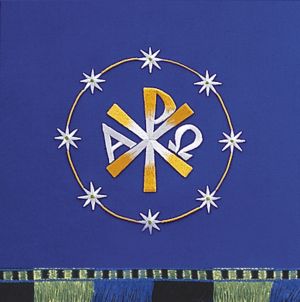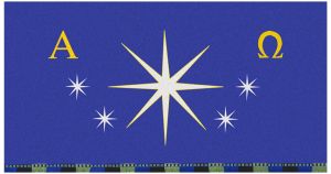 To press out any creases caused by packaging or shipping, use a steam iron set at mid-range heat and a slightly damp press cloth. Press from the back side of the parament, allowing as much steam as possible to penetrate fabric. Allow fabric to cool before removing from ironing board.