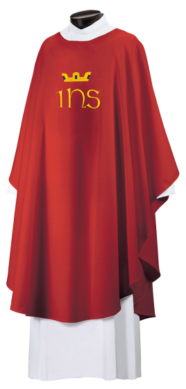 Elegant all embroidered Castle Craft chasuble available in an array of beautiful red fabrics, perfect for any Pentecost celebration.