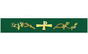Primarily Embroidered with some Applique. Special size requirements, please call Gaspard to assist in ordering your Paraments @ 800-784-6868. Allow 8 weeks for Paraments and Banners. Paraments/Banners are made to order and are non-returnable.