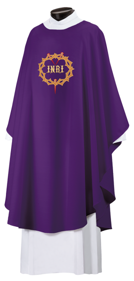 We follow Jesus as He travels the road to Golgotha and the Ultimate Sacrifice, the Crucifixion. Each Symbol gives the worshipper a visual picture of the Passion. Stunning appliqué and embroidered chasuble available in an array of beautiful purple fabrics, perfect for any Lent celebration.