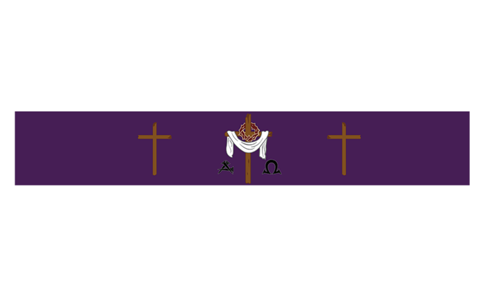 Applique with Satin-Stitch Embroidery. Available for online purchase as standard size only. For special size requirements please contact our friendly, knowledgeable Customer Service Representatives to assist in ordering your Paraments at 800-784-6868.