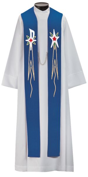 He would come as the light of the world and would be called “King of Kings”, born in a stable in Bethlehem. Applique with Satin-Stitch Embroidery. Available for online purchase standard size only. For special size requirements please contact our friendly, knowledgeable Customer Service Representatives to assist in ordering your Paraments at 800-784-6868.
