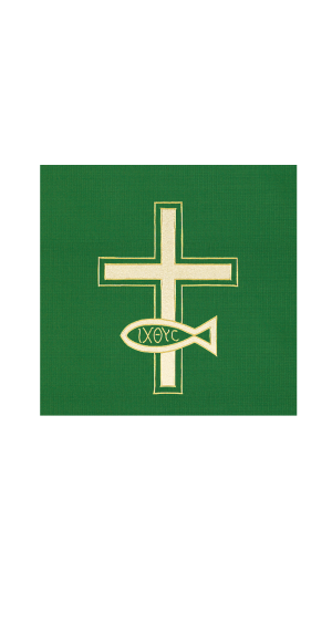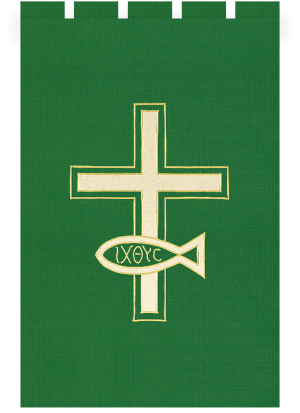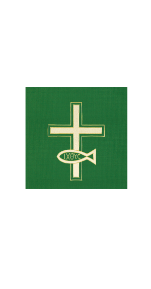 Applique with Satin-Stitch Embroidery. Special size requirements, please call Gaspard to assist in ordering your Paraments @ 800-784-6868. Allow 8 weeks for Paraments and Banners. Paraments/Banners are made to order and are non-returnable.