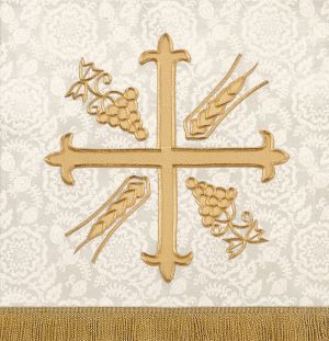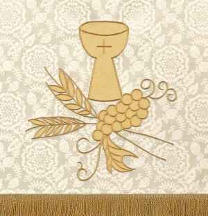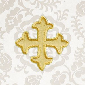 To press out any creases caused by packaging or shipping, use a steam iron set at mid-range heat and a slightly damp press cloth. Press from the back side of the parament, allowing as much steam as possible to penetrate fabric. Allow fabric to cool before removing from ironing board.