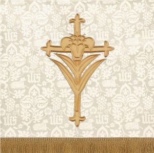 To press out any creases caused by packaging or shipping, use a steam iron set at mid-range heat and a slightly damp press cloth. Press from the back side of the parament, allowing as much steam as possible to penetrate fabric. Allow fabric to cool before removing from ironing board.