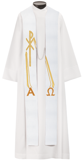 Applique with Satin-Stitch Embroidery. Available for online purchase as standard size only. For special size requirements please contact our friendly, knowledgeable Customer Service Representatives to assist in ordering your Stole at 800-784-6868.
