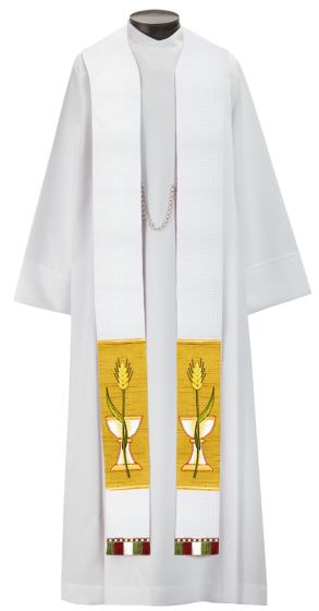 Primarily Embroidered, some Applique, couching and block fringe. Available for online purchase as standard size only. For special size requirements please contact our friendly, knowledgeable Customer Service Representatives to assist in ordering your Paraments at 800-784-6868.