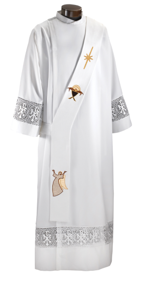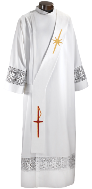 All paraments include a high quality fused interlining for stability. Available for online purchase as standard size, for special sizing please contact one of our friendly customer service representatives at (800) 784-6868. All products handcrafted in Brookfield, Wisconsin USA.