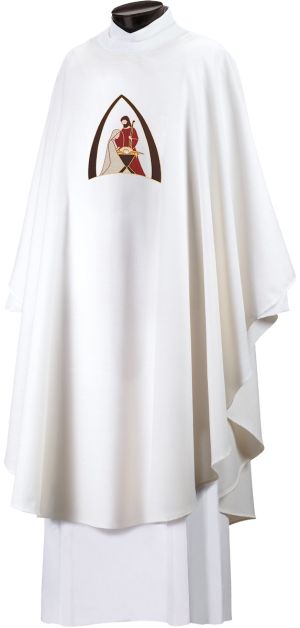 Elegant appliqué and embroidered chasuble available in an array of beautiful white and gold fabrics, perfect for any Christmas celebration.