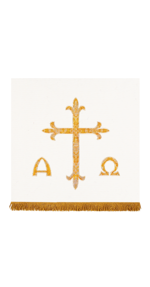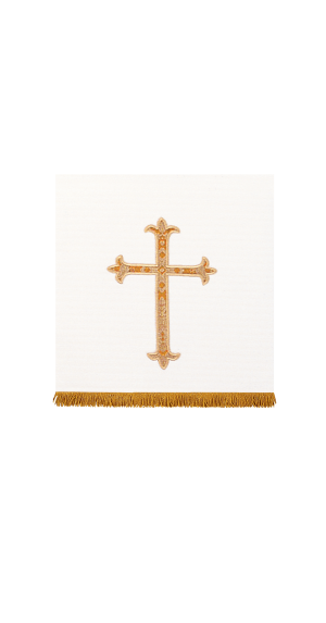 Beautiful applique with Embroidery and Metallic Gold Twist Fringe. Available for online purchase as standard size only. For special size requirements please contact our friendly, knowledgeable Customer Service Representatives to assist in ordering your Paraments at 800-784-6868.