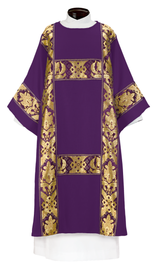 This lovely Dalmatic showcases breathtaking Chapel Brocade woven Orphrey panels on Luxemberg material with matching trim in timeless patterns. Available in colors to celebrate every liturgical season, this classic design reflects beautiful church tradition.
