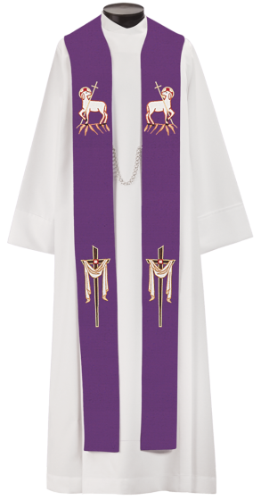 Applique with Satin-Stitch Embroidery. Available for online purchase as standard size only. For special size requirements please contact our friendly, knowledgeable Customer Service Representatives to assist in ordering your Stole at 800-784-6868.