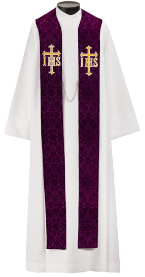 Applique with Satin-Stitch Embroidery. Available for online purchase as standard size only. For special size requirements please contact our friendly, knowledgeable Customer Service Representatives to assist in ordering your Stole at 800-784-6868.