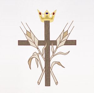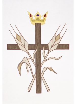 The Crown and the Cross bring to mind the omnipotence of God in this beautiful parament. The use of rich gold on white makes this parament suitable for any service. Elegant appliqué and embroidered chasuble available in an array of beautiful white and gold fabrics, perfect for any Easter or Christmas celebration.