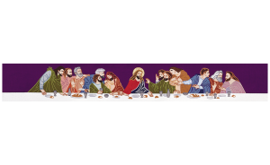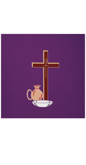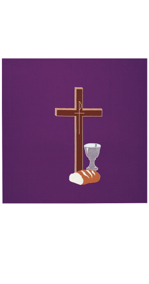 We celebrate the moment of the Lord’s Supper with this beautiful depiction of that holy event. The pitcher and basin remind us of our call to service, and the cup and loaf remind us of our Communion in the Lord. Applique with Satin-Stitch Embroidery. Available for online purchase standard size only. Special size requirements, contact Gaspard @ 800-784-6868. Allow 8 weeks for Paraments/Banners. Made to order and non-returnable.
