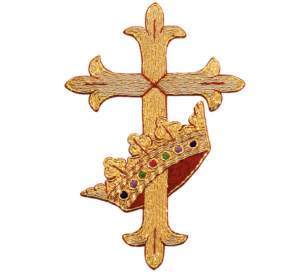 Hand Embroidered Cross & Crown Applique